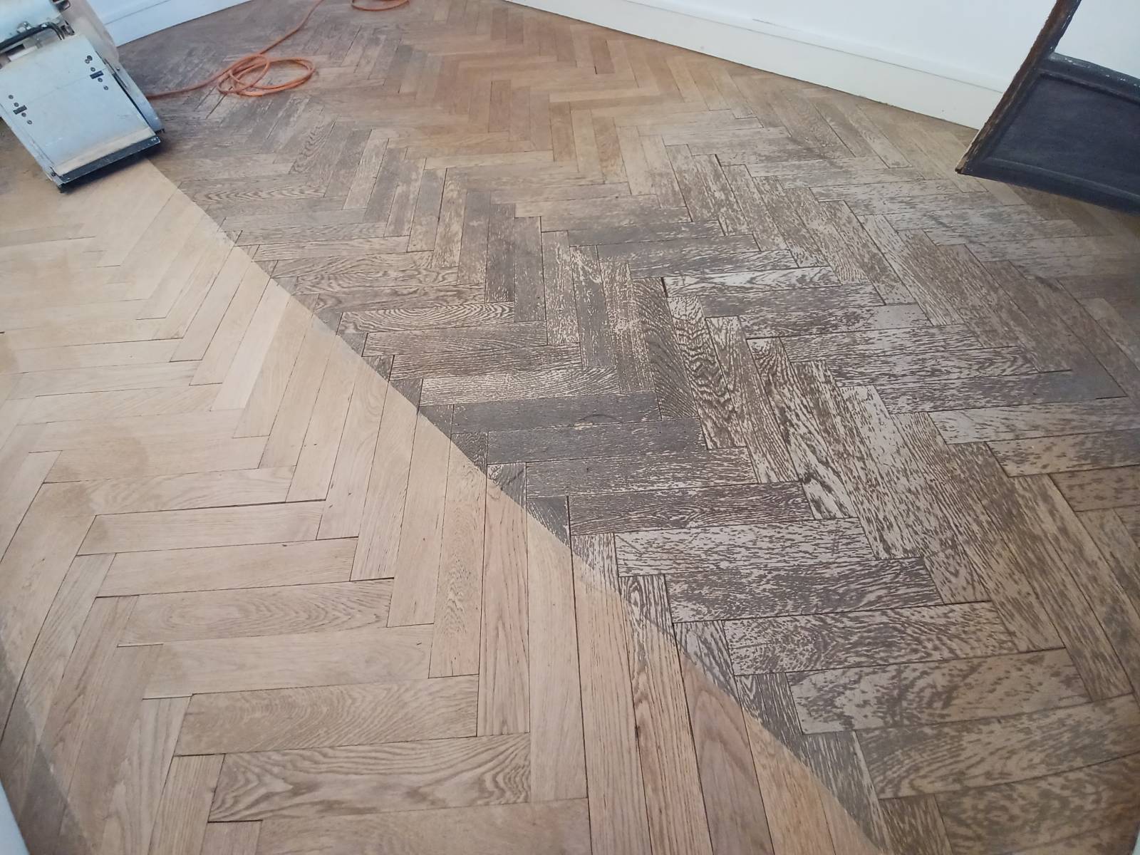 JB Briche, artisan du sol, a réalisé la rénovation d'un sol en parquet pose chevron en pose collée dans un loft du 12 ème arrondissement de Marseille, à Saint Barnabé.Après intervention de la mise en oeuvre de ce parquet dans un salon...