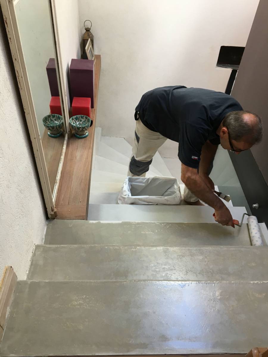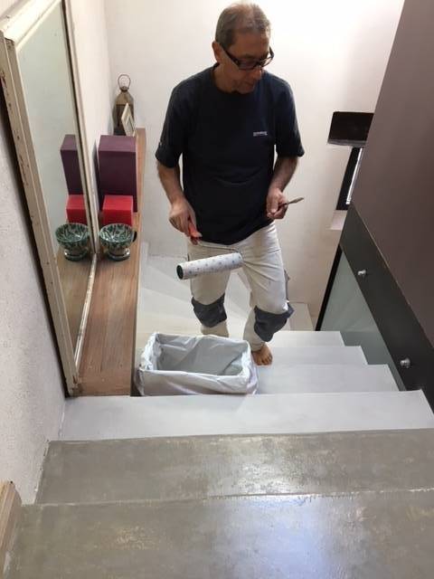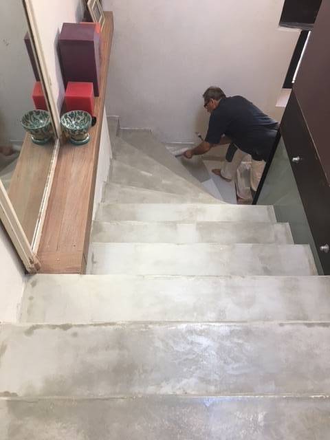 Ensuite, nous avons appliqué une résine de protection permettant de garder la brillance de cet escalier plus longtemps.