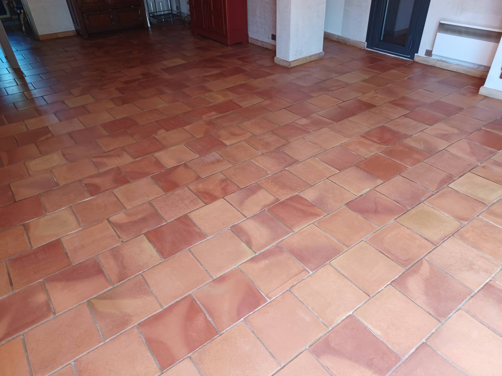 Avec le temps, les carreaux en terre cuite peuvent perdre leur couleur et devenir ternes. Dans cette villa, les carreaux montraient également des traces de rayures.