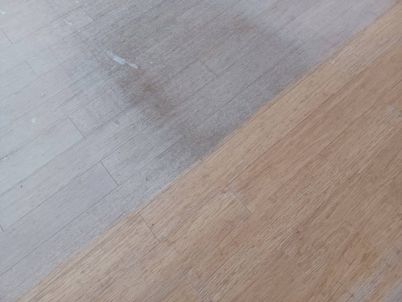 ponçage à la machine à bande avec aspiration directe permettant de limiter l'émanation de poussières, M. Briche a redonné au bambou son aspect d'origine en enlevant ainsi les tâches et la couleur grisâtre du bois.