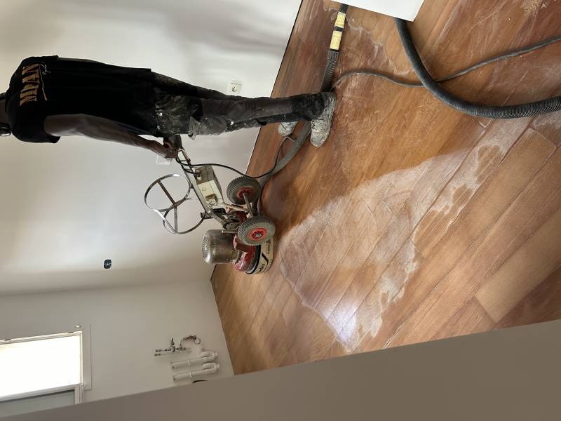 La société JBB ARTISANS DU SOL a réalisé la rénovation d'un parquet en bois exotique à Marseille, près de Notre-Dame de la Garde, en procédant à un ponçage et à une vitrification du parquet.