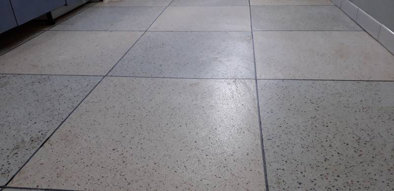 Suite à un dégât des eaux, les carreaux de granito avec des joints de Bakélite ont ternis le sol (brillance).