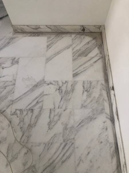Enfin, pour redonner de la brillance à l'ensemble du carrelage en marbre blanc de Carrare, une mise en lustrage de l'ensemble de la pierre a été réalisé.