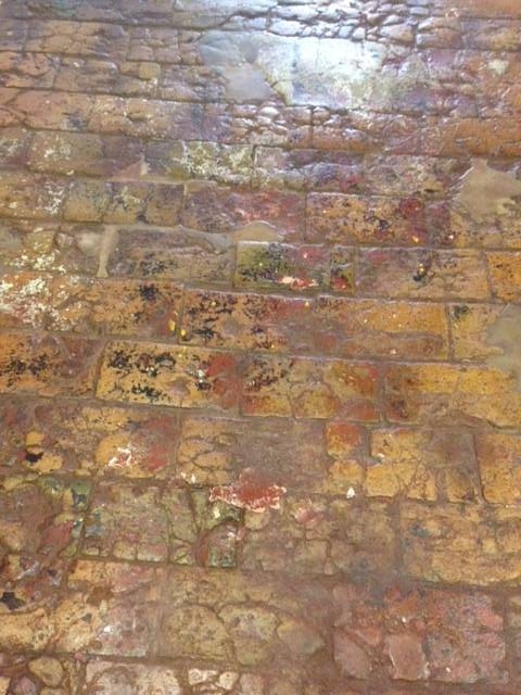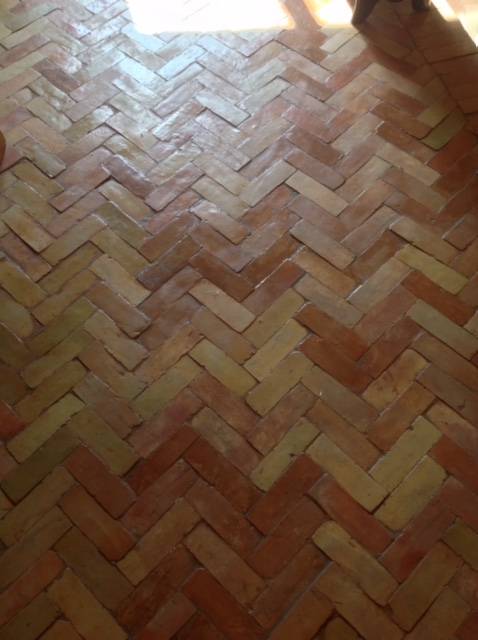 Décapage action mécanique mono-brosse, intervention à l'eau sans poussière.Traitement finition, mise en cire chaude.Décapage et remise en cire d'une terre cuite en Bachmat.