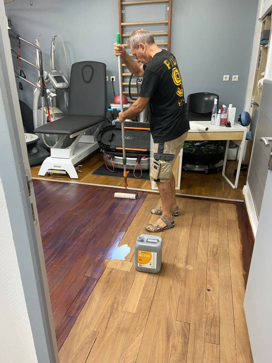 Dans le cadre d'une rénovation complète de ses sols en parquet, le centre médical situé rue Paradis dans le 8ème arondissement de Marseille a fait appel à M.Briche. Après une étape de ponçage des sols machine à bande avec aspiration directe pour limiter au maximum l'émanation de poussière, une mis...